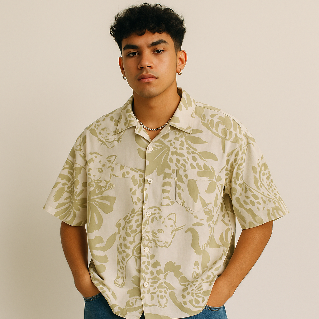 H&M Tropical Leopard Print Casual Shirt - Large